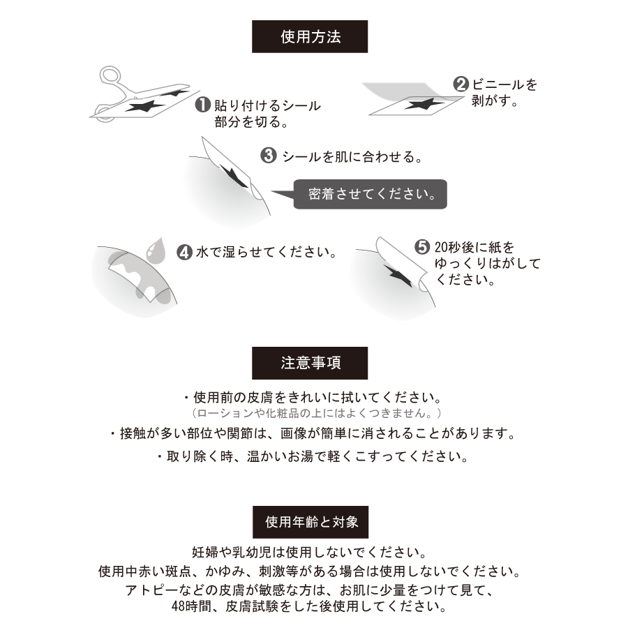 初めてのタトゥーシールの方も安心してお使いいただけるよう説明書をお入れしております。